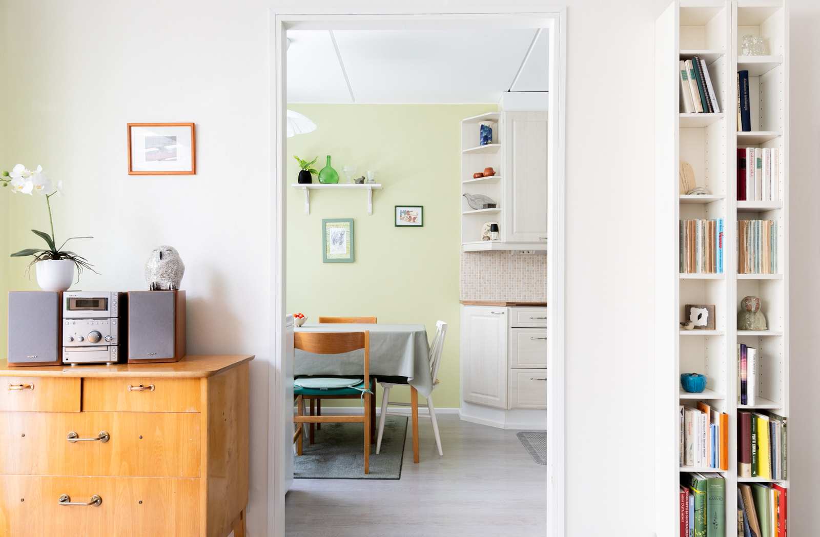 Olohuone | Olohuoneessa lattia laminaattia, seinät tapetti. |
