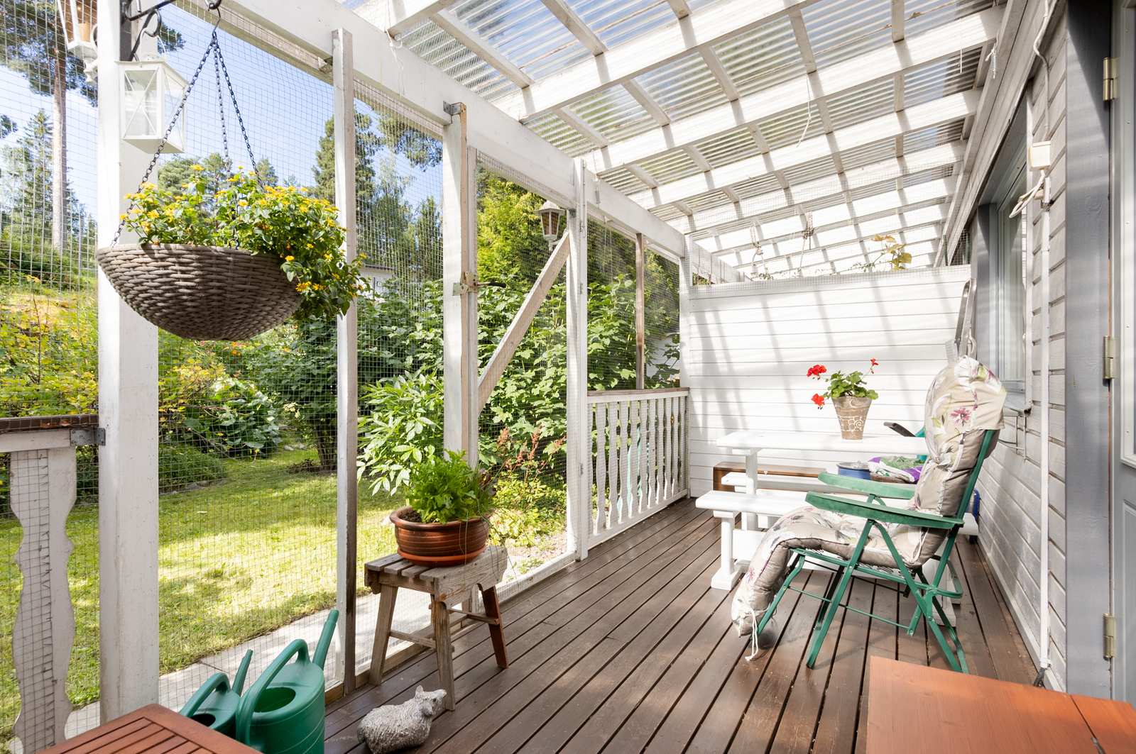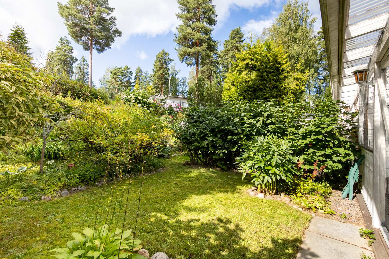 Maasto | Piha lounaaseen, tilava terassi, istutuksia, marjapensaita. |