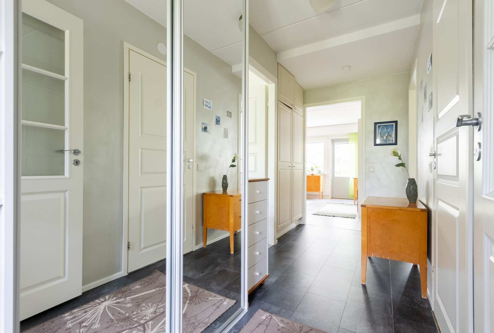 Tilojen kuvaus | Eteisessä lattialaminaattia, liukuovikaapisto, kaapit. Tuulikaapissa lattia parkettia. |