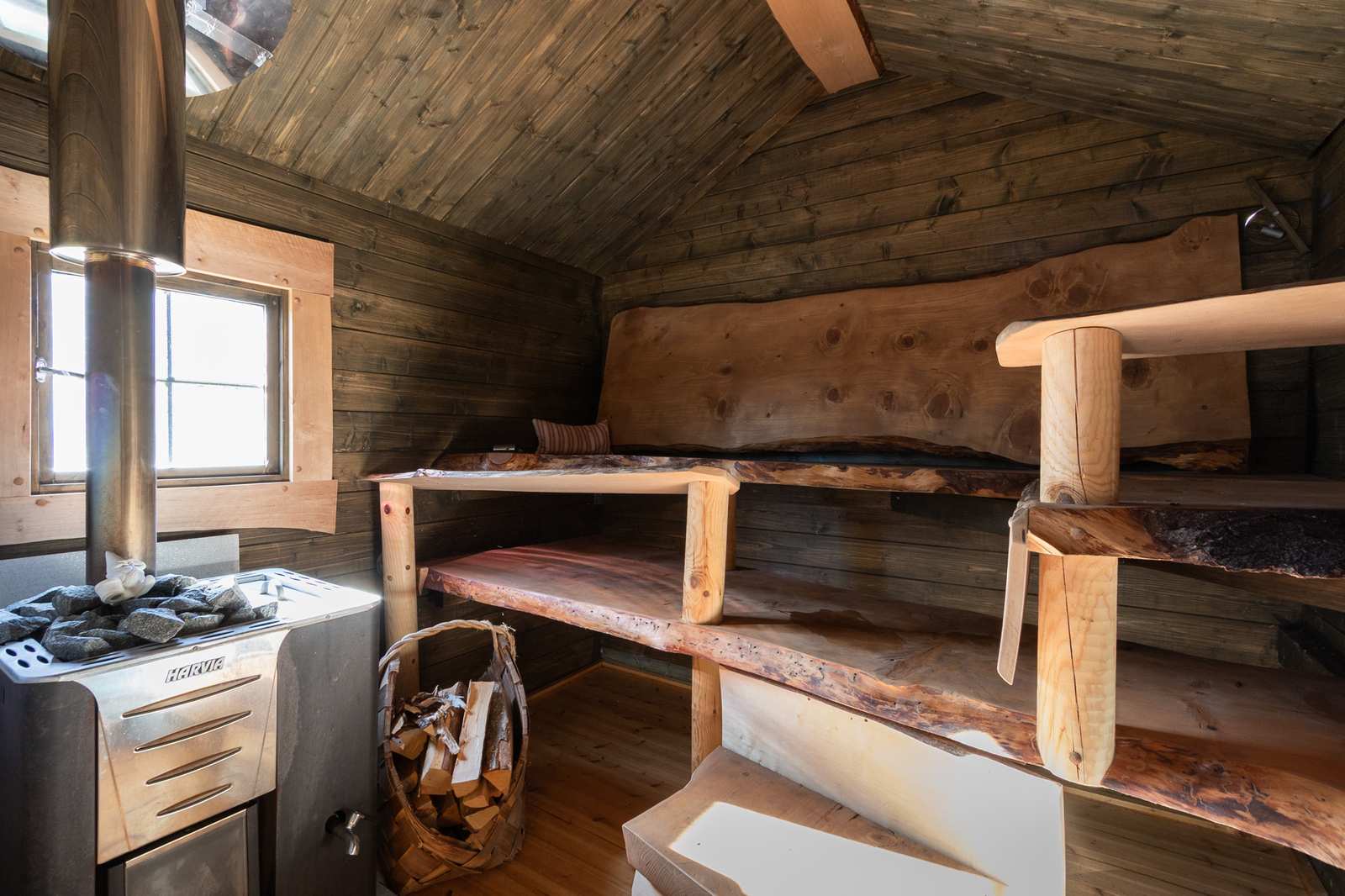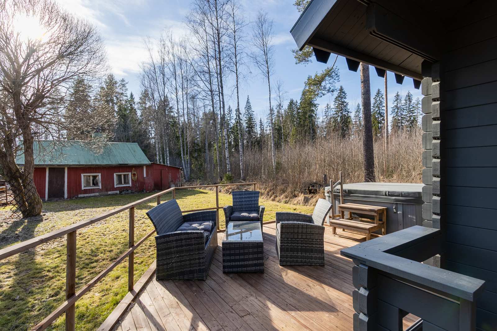| Saunan kuvaus | Erillinen ulkosauna, jossa puukiuas ja terassilla poreamme. |