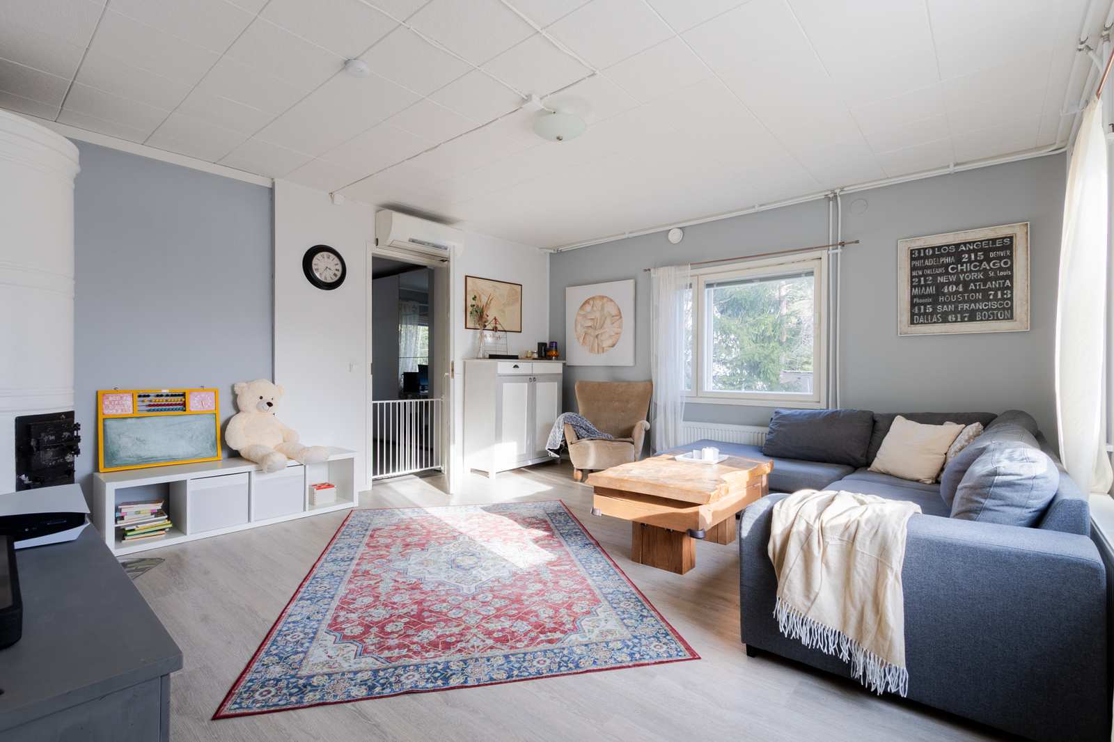 | Olohuone | Olohuoneessa lattia vinyyliä, seinät maalipinta, pönttöuuni, ilmalämpöpumppu. |