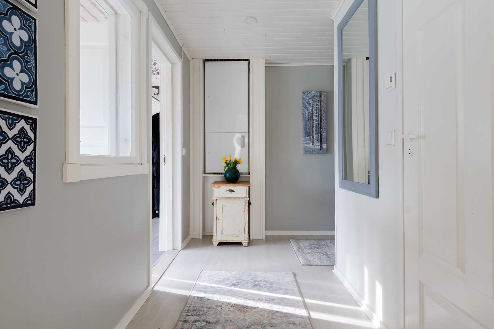 | Säilytystilat | Paljon säilytystilaa komeroissa, viistokattotiloissa ja vintillä. |