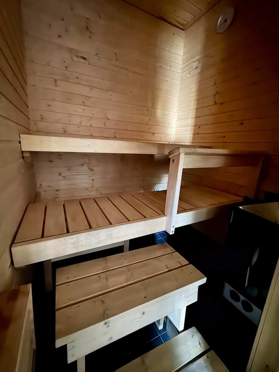 | Saunan kuvaus | Sähkökiuas, lauteet, paneloitu. |