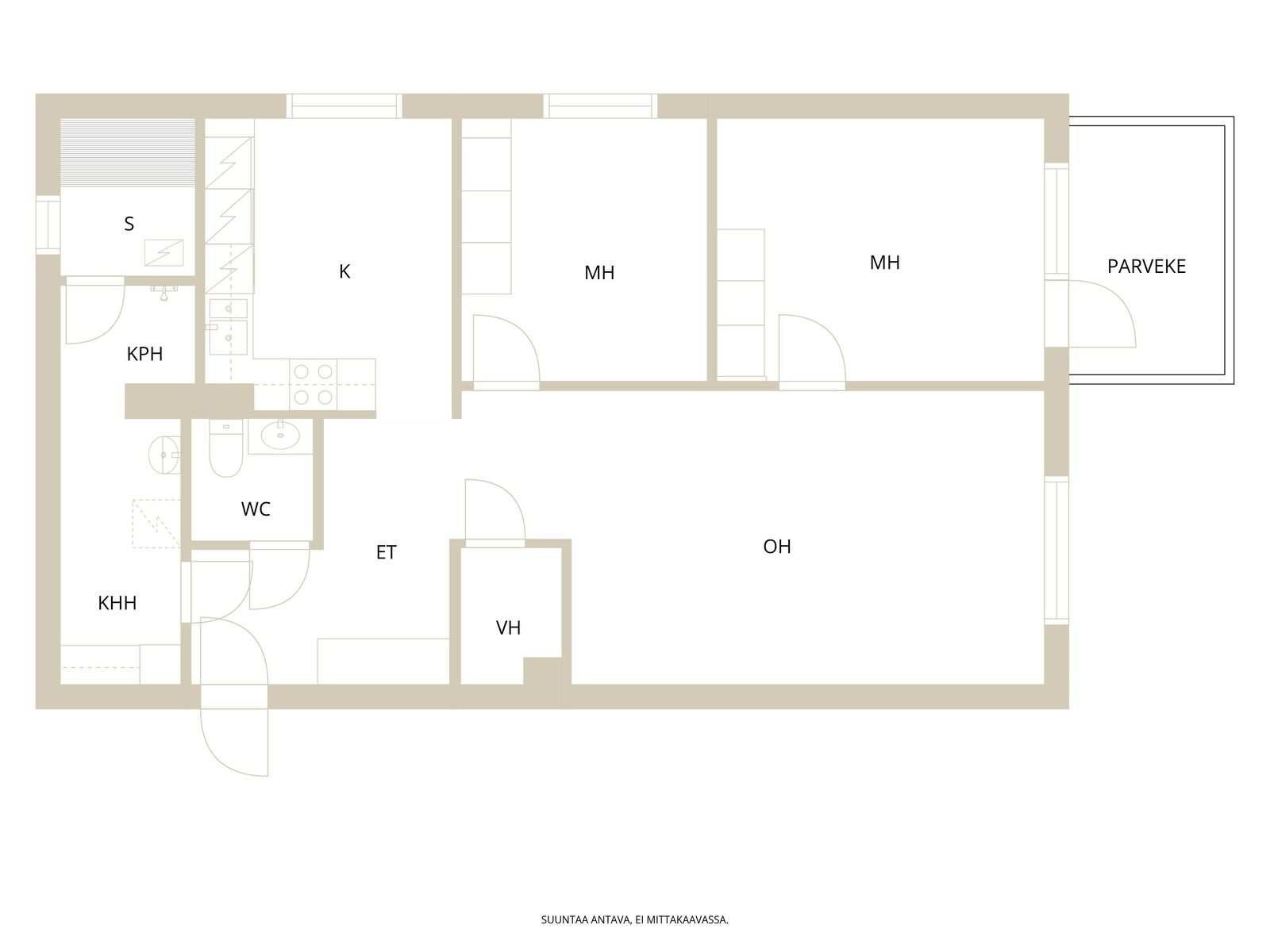 | Huoneistoselitelmä | 3h, k, kph, s, wc, las.p |