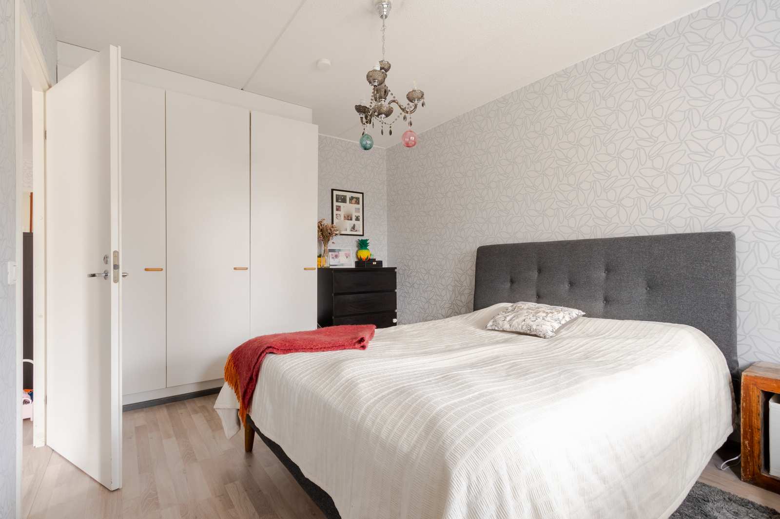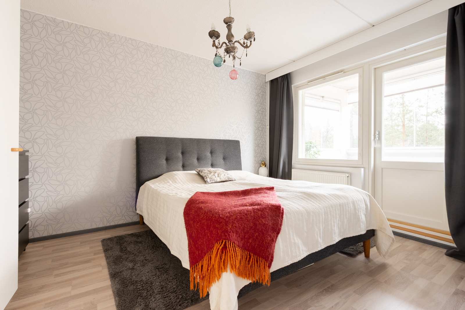 | Makuuhuone | Makuuhuoneissa lattiat laminaattia, seinät tapetti, kaapistot. |